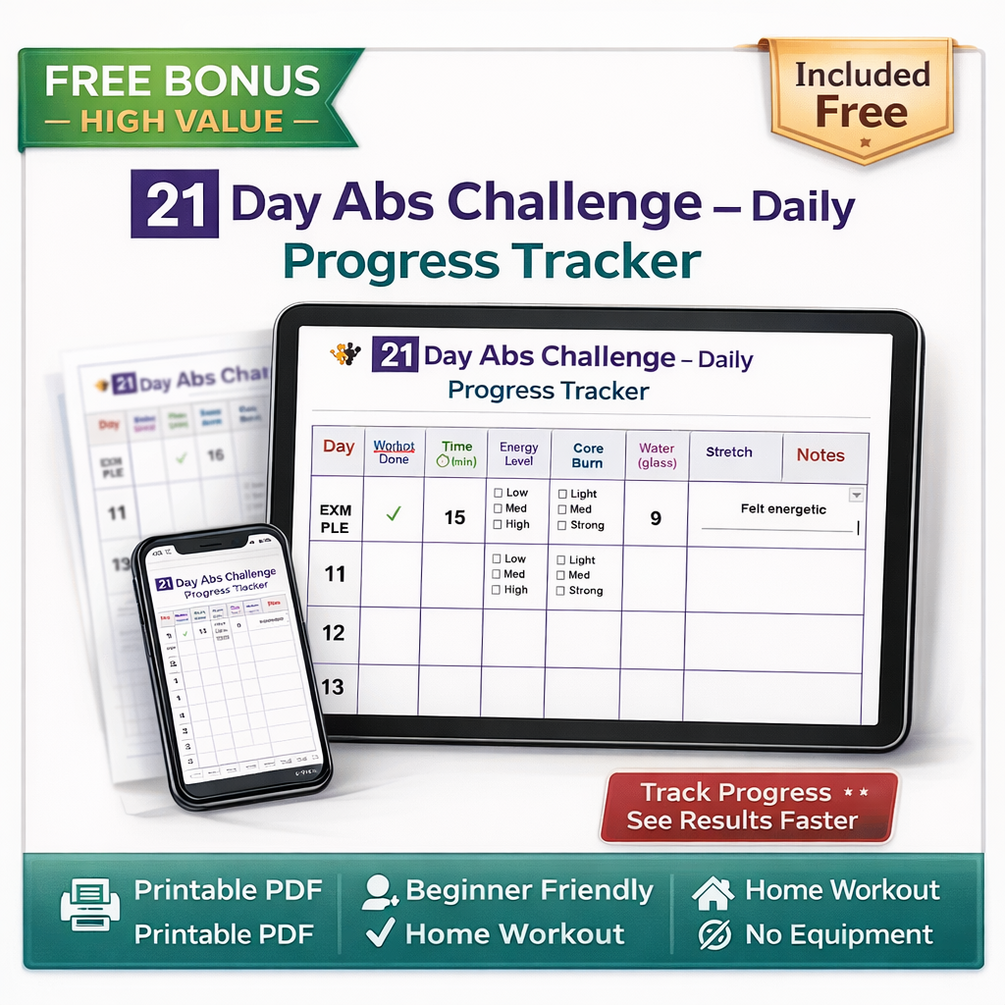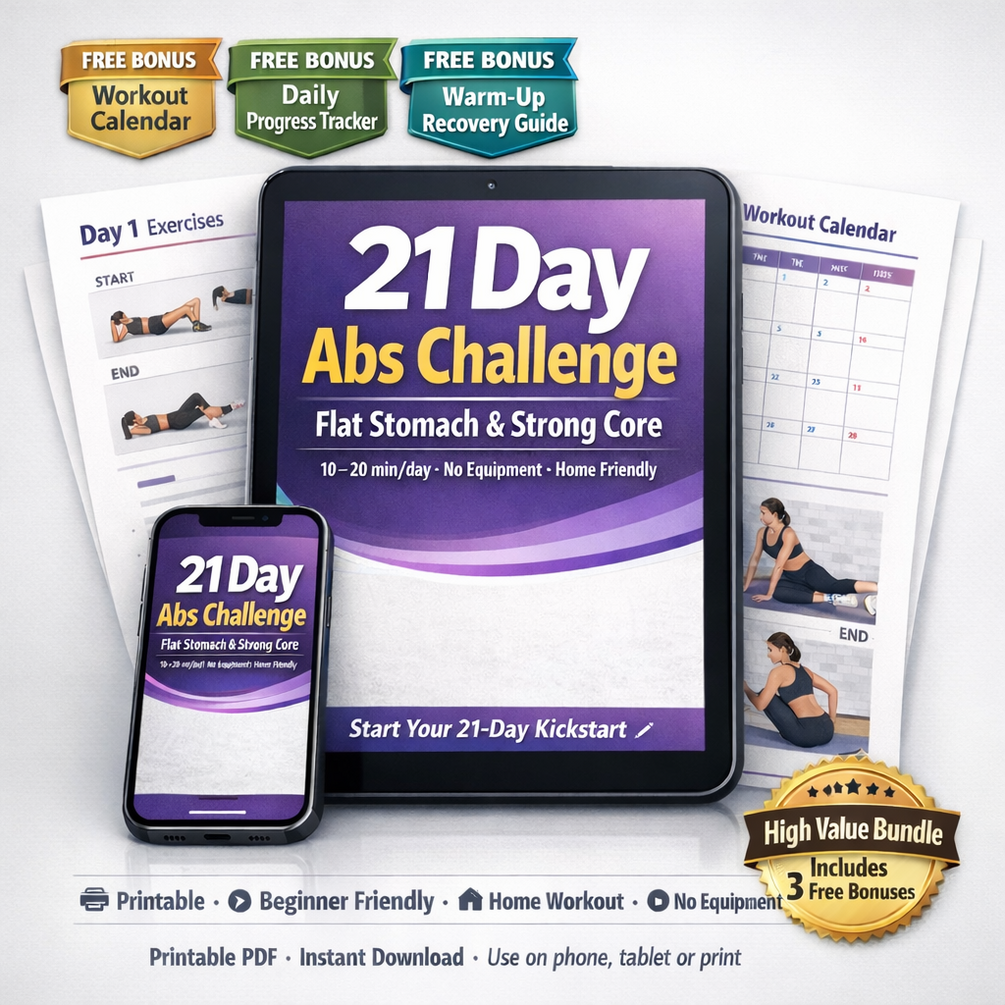 21 Day Abs Challenge – Flat Stomach & Strong Core - 3 Free Bonus (Printable)