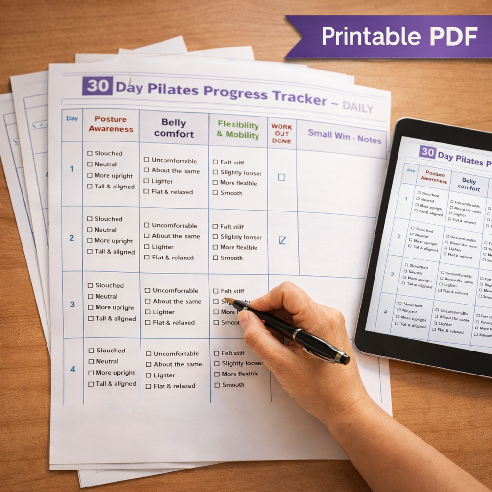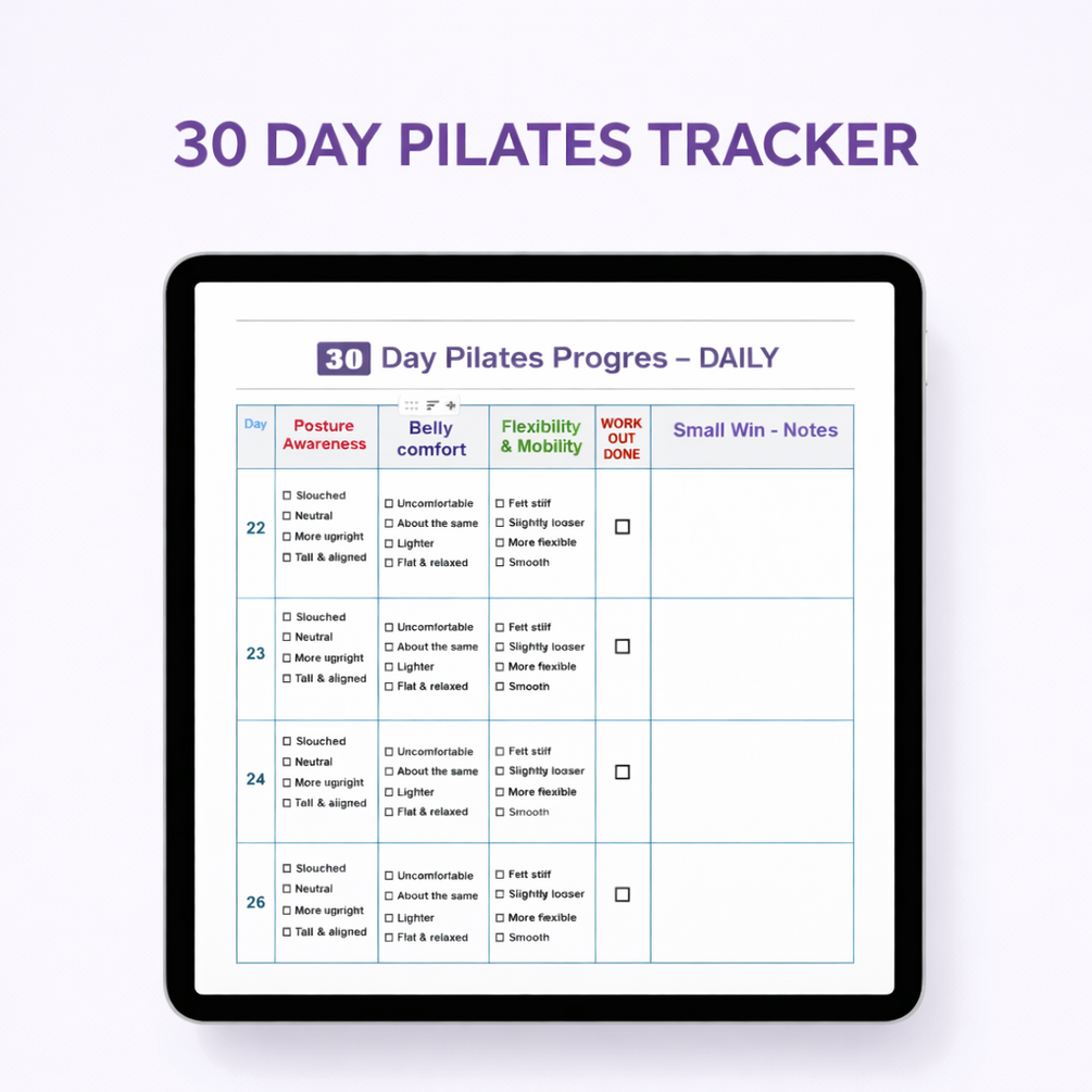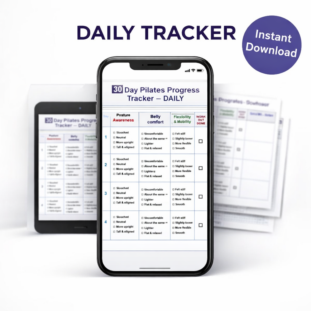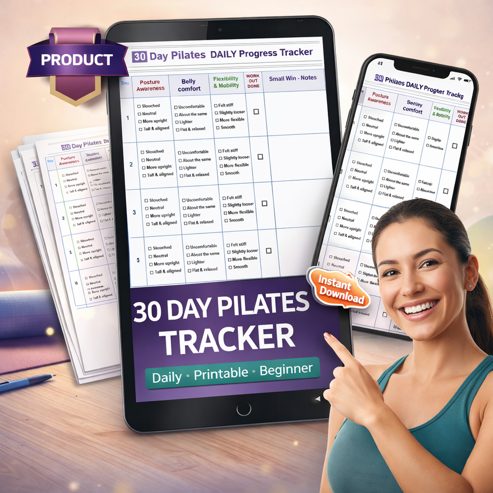 This 30-Day Pilates Daily Progress Tracker is a clean, beginner-friendly printable designed to help you stay motivated, build consistency, and actually finish your Pilates routine—day by day.