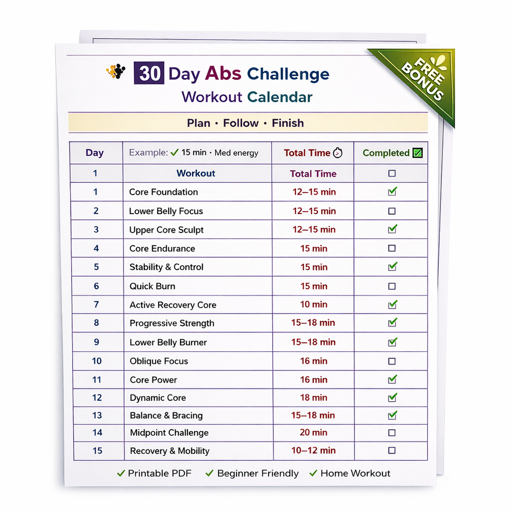🎁 FREE BONUS #1 – 30 Day Abs Workout Calendar (1 Page)