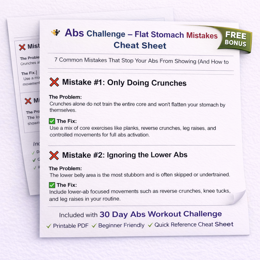 🎁 FREE BONUS #6 – Flat Stomach Mistakes Cheat Sheet (2 Pages)