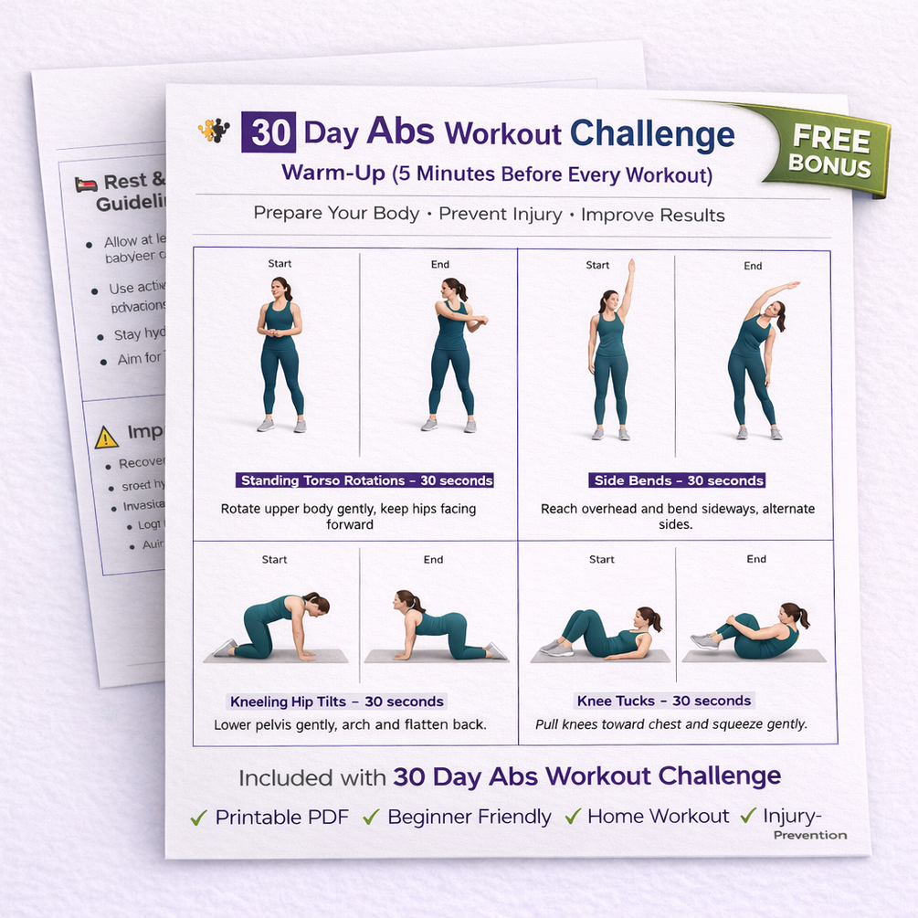 30-Day Abs Workout Challenge — Complete + 6 FREE Bonuses (Printable PDF)