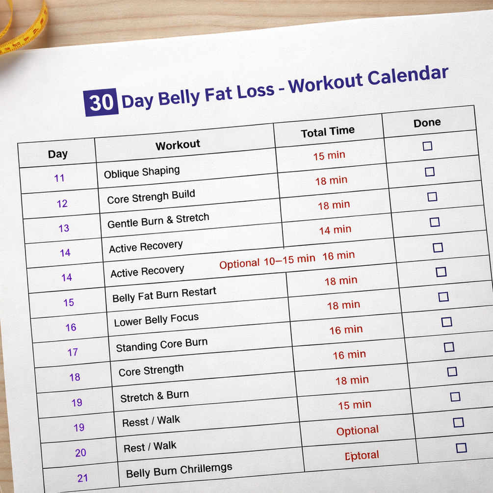 If you want a clear plan instead of confusing workout programs, this 30-Day Belly Fat Loss Workout Calendar is made for you.