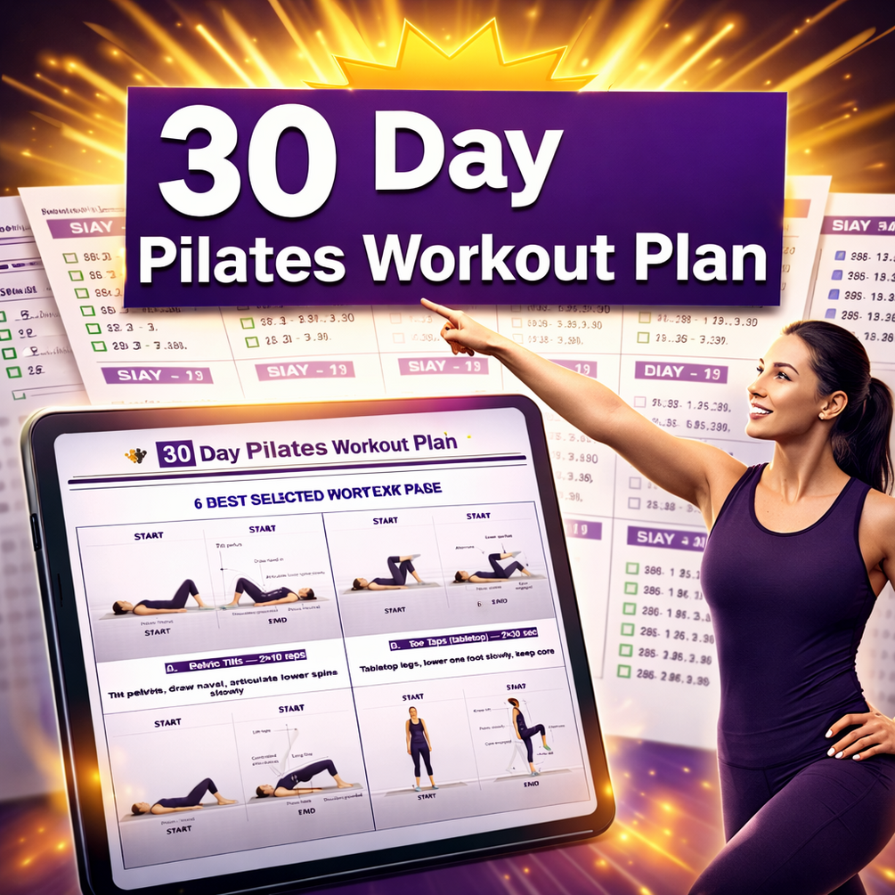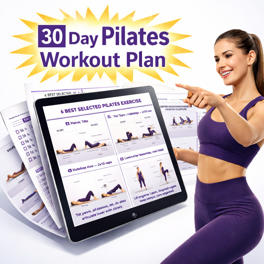 This printable Pilates workout plan is designed for beginners who want a simple, structured, and effective routine without gym equipment or complicated movements.