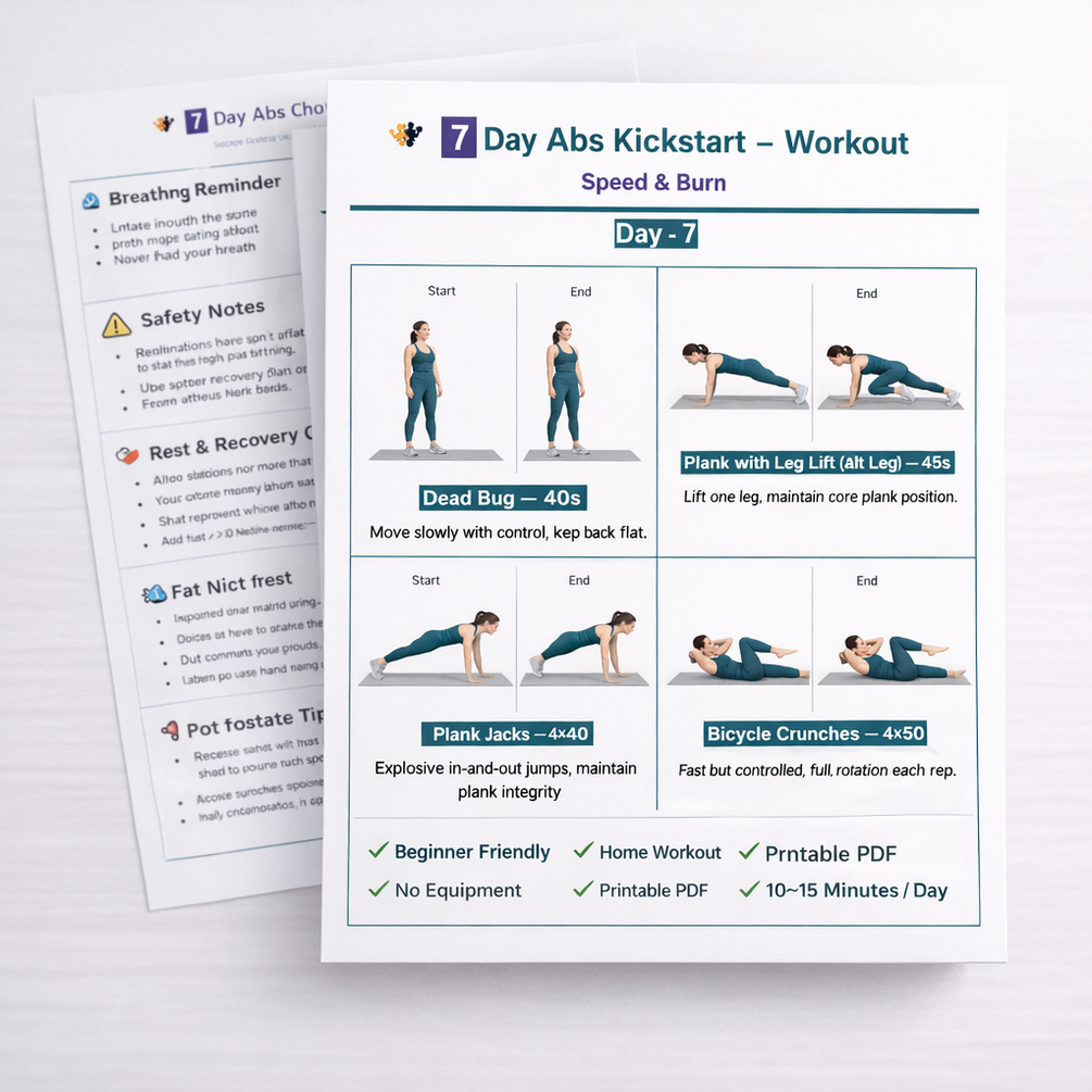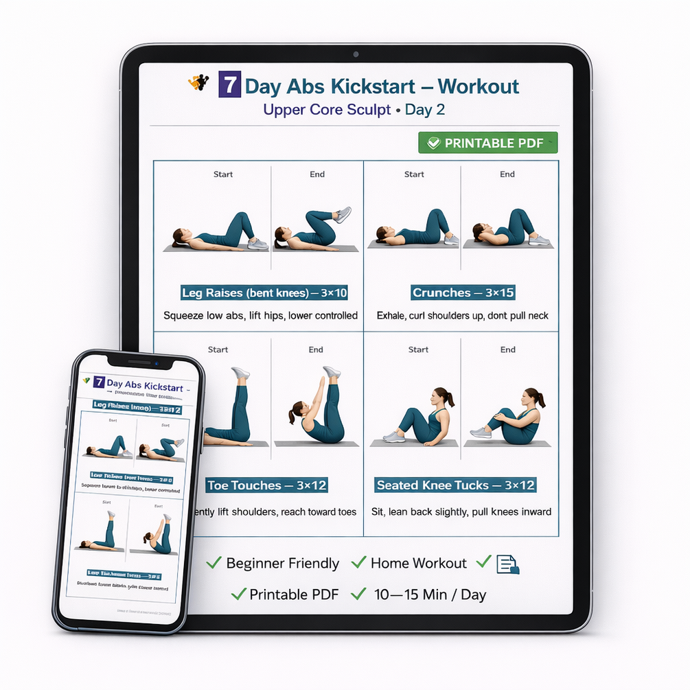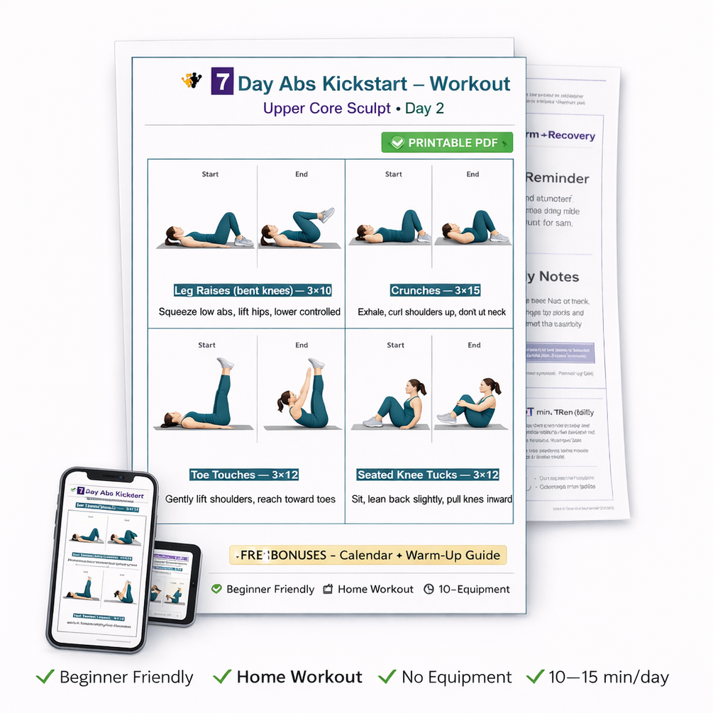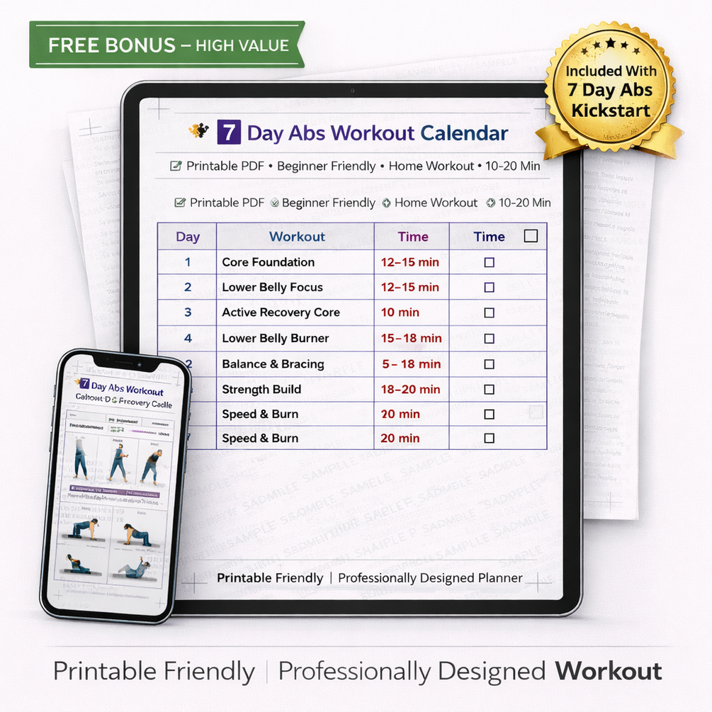 7 Day Abs Kickstart β Flat Stomach & Strong Core (Beginner Friendly Home Workout) - 2 Free Bonus Printable