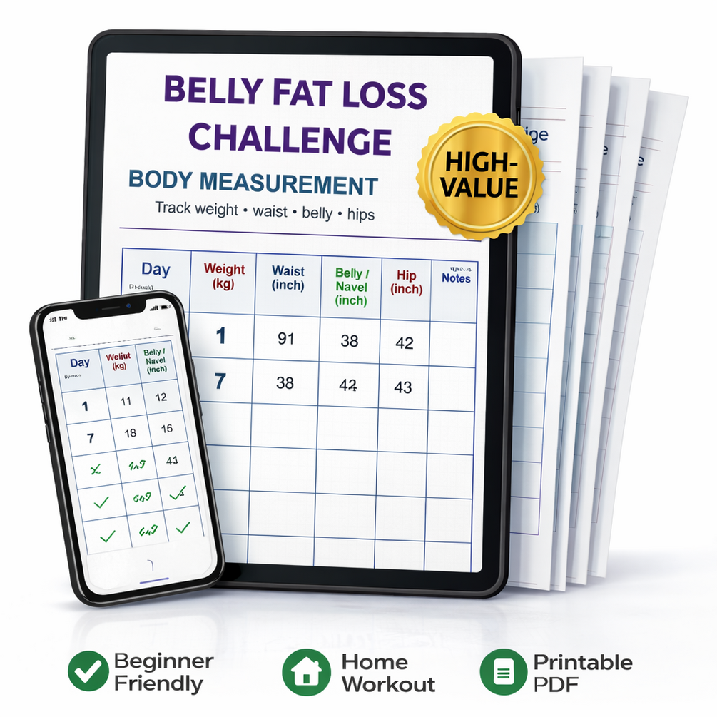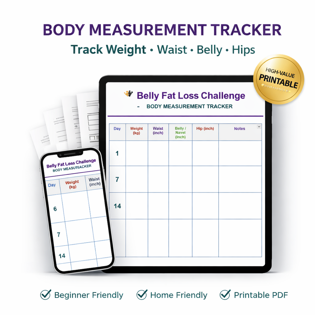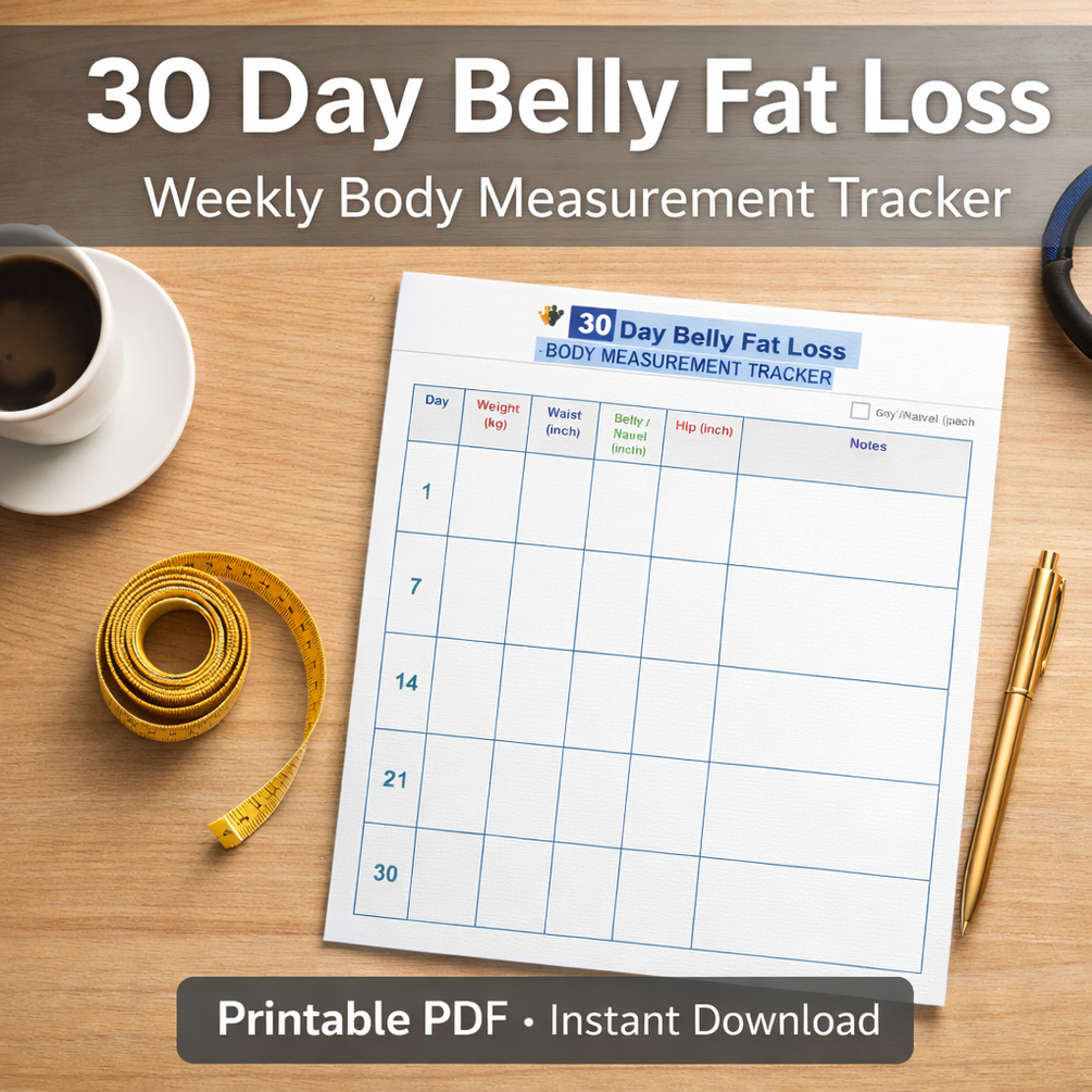 This 30 Day Belly Fat Loss – Weekly Body Measurement Tracker is designed to help you track real progress, not just guess it.
